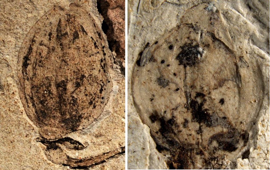左图为与果柄相连的果实,右图为经过修理而暴露出来的侏罗花蕾。中科院南京地质古生物研究所供图