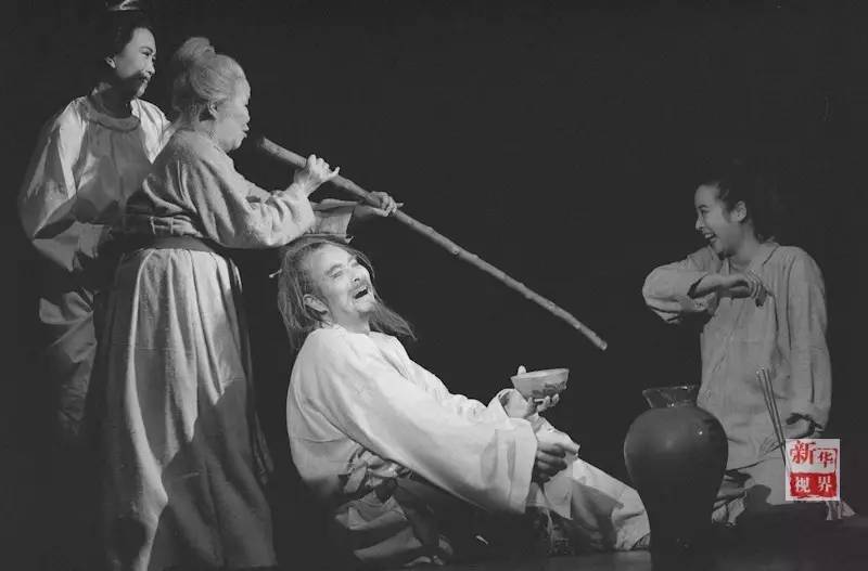 老一代艺术家于是之、郑榕、蓝天野等人出演的人艺名剧《茶馆》。新华社记者张旭摄