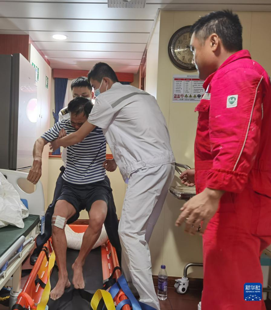 7月4日清晨,海上搜救力量救起1名“福景001”轮失联人员,该船员目前生命体征稳定。新华社发(广东省海上搜救中心供图)