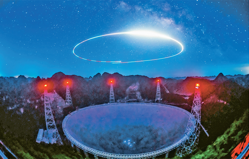 截至2022年7月,被誉为“中国天眼”的500米口径球面射电望远镜已发现660余颗新脉冲星,进入成果爆发期,极大拓展了人类观察宇宙视野的极限。这是2022年7月24日拍摄的“中国天眼”夜景。 新华社记者 欧东衢/摄