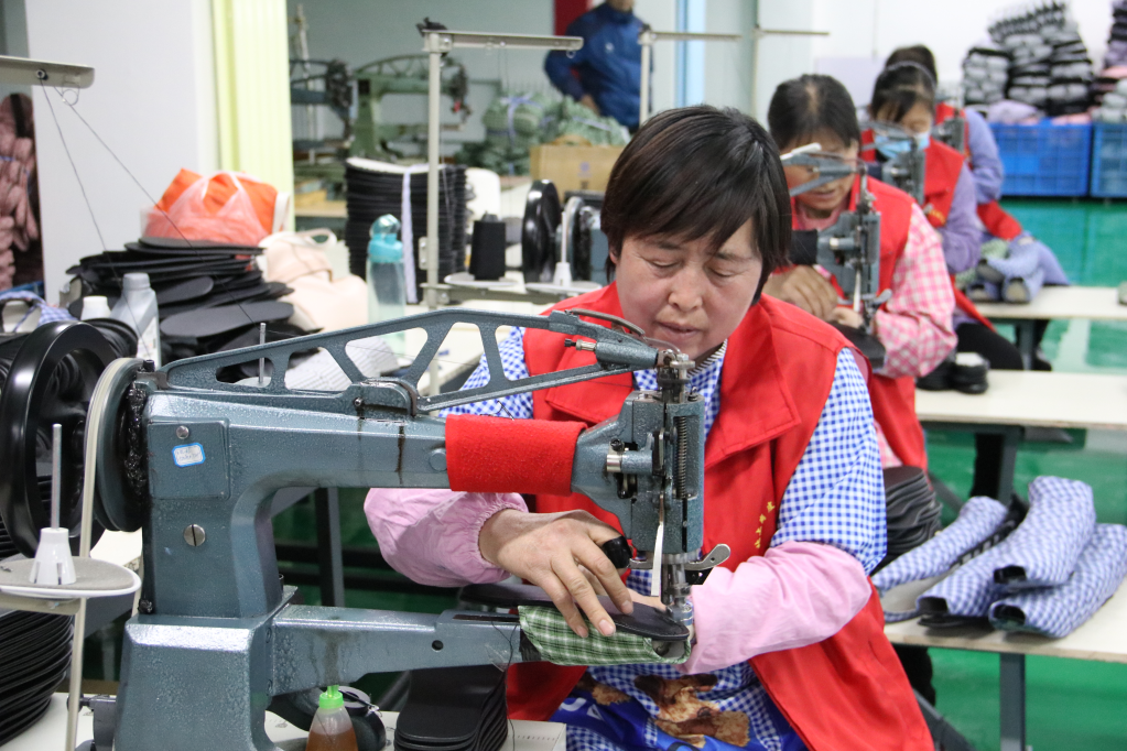 张北县义合美新城安置群众在箱包厂工作。(图片由受访对象提供)