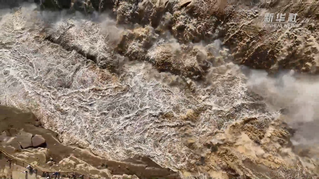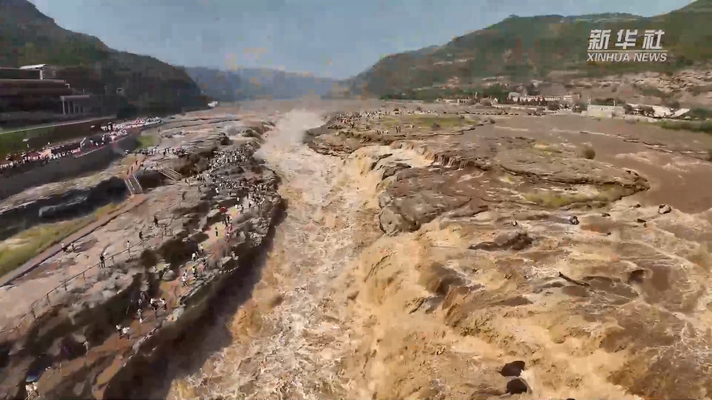 近日,受上游水库泄洪影响,位于黄河晋陕峡谷中段的壶口瀑布迎来入秋以来最大流量,每秒流量超过2000立方米,形成绵延数百米的壮美瀑布群景观。