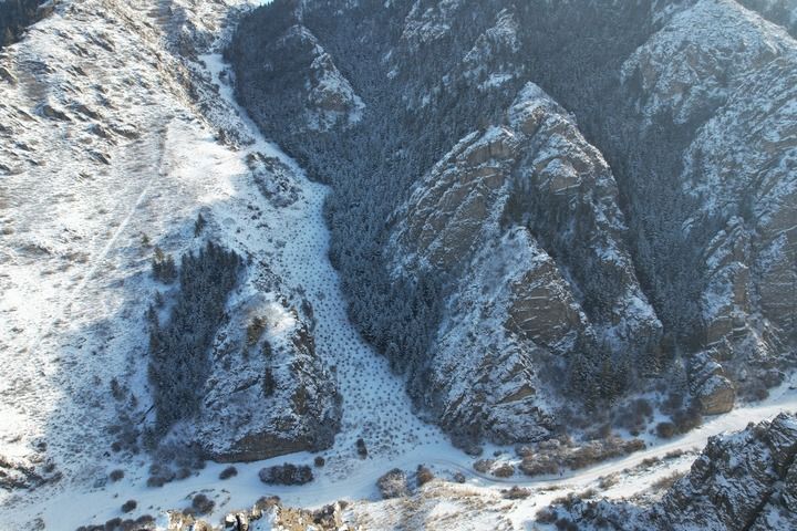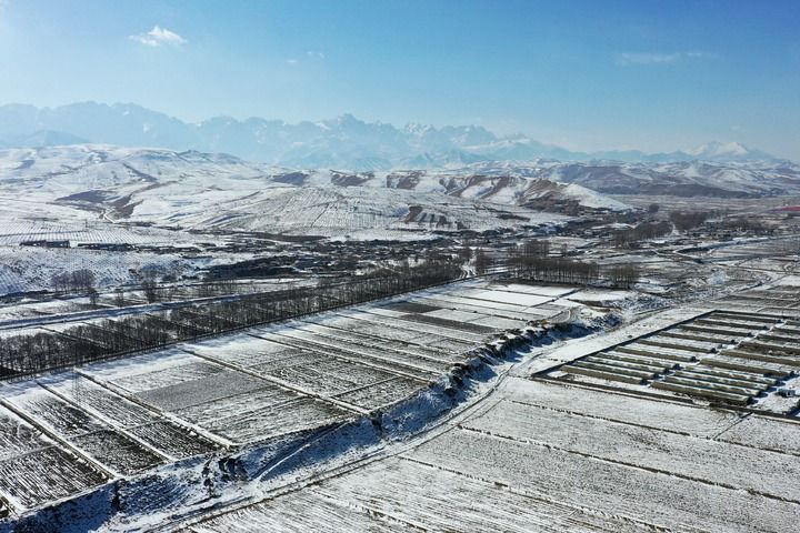 这是在甘肃省张掖市肃南裕固族自治县境内拍摄的祁连山北麓冬日景象。新华每日电讯记者范培珅摄