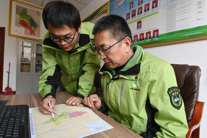 1月22日,在大熊猫祁连山国家公园甘肃省管理局张掖分局西水保护站,工作人员商议管护责任区森林草原防火工作。新华每日电讯记者范培珅摄