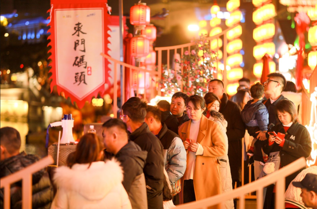 夜幕初降,在成都东门码头等待登船夜游锦江的游客已经排起了数百米的长队。夜游锦江项目是全国20个沉浸式文旅新业态示范案例之一,也是近年来社交平台上的“网红打卡点”。今年春节期间,夜游锦江推出新游线,还全新推出“蜀味锦江”水上主题火锅船。
