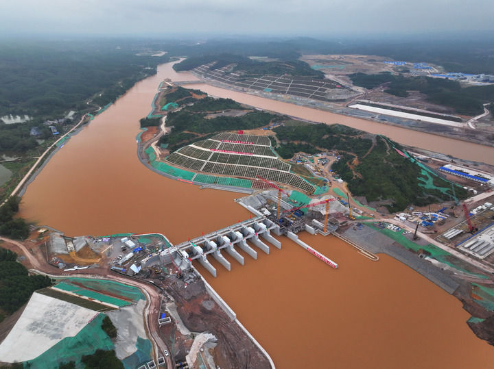 平陆运河青年枢纽建设现场(无人机照片)。新华社记者 周华 摄