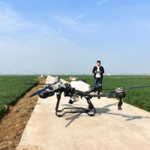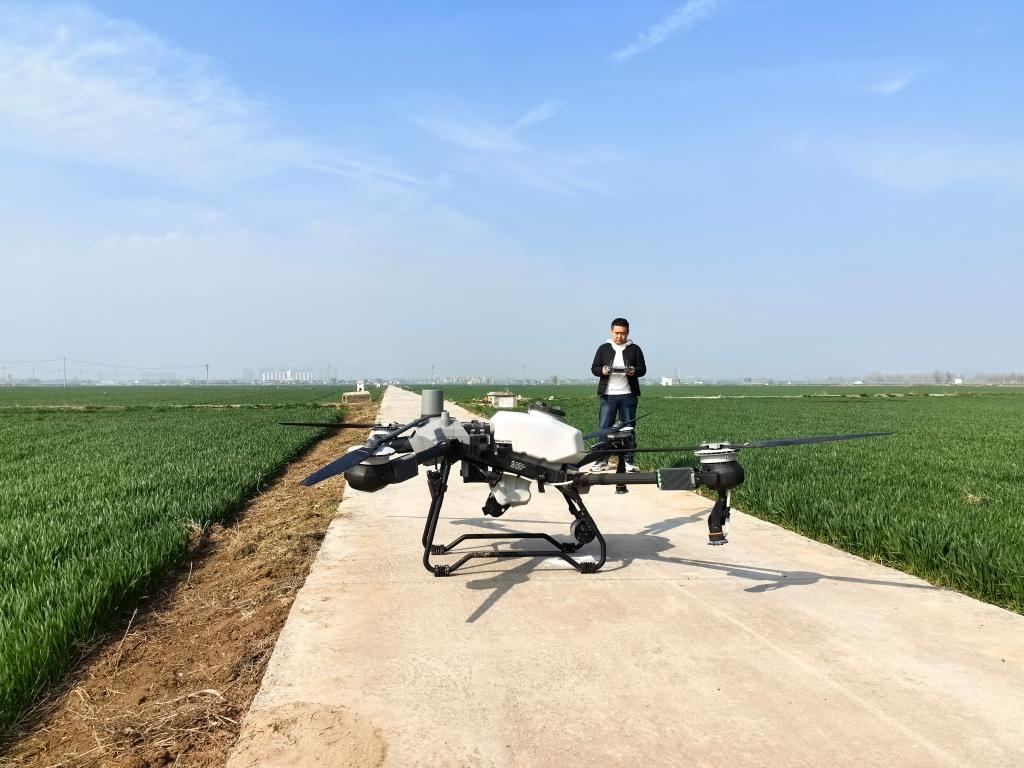 河南新乡县种粮大户马文昌在操控无人机。新华社记者刘金辉 摄