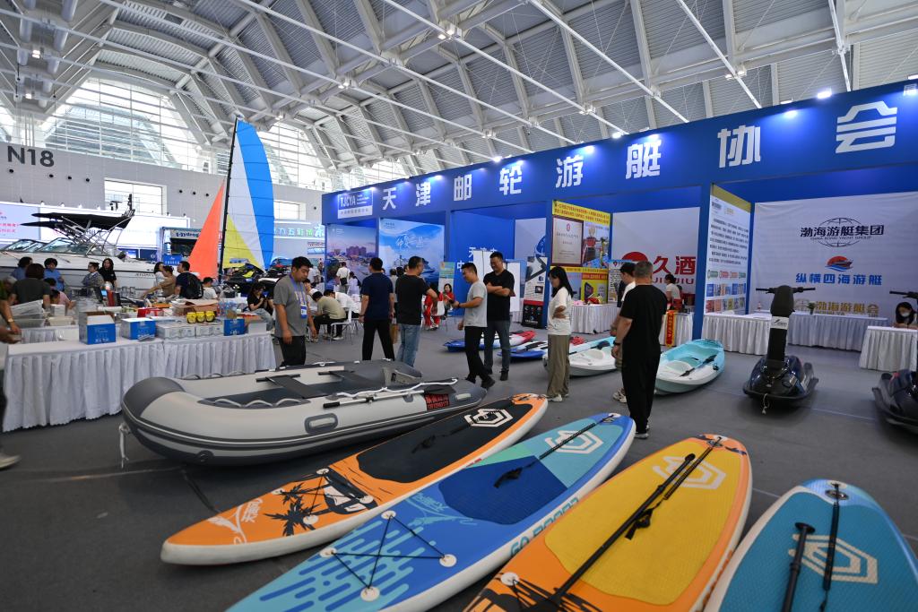 7月11日,与会者在天津邮轮游艇协会展区参观。新华社记者 李然 摄
