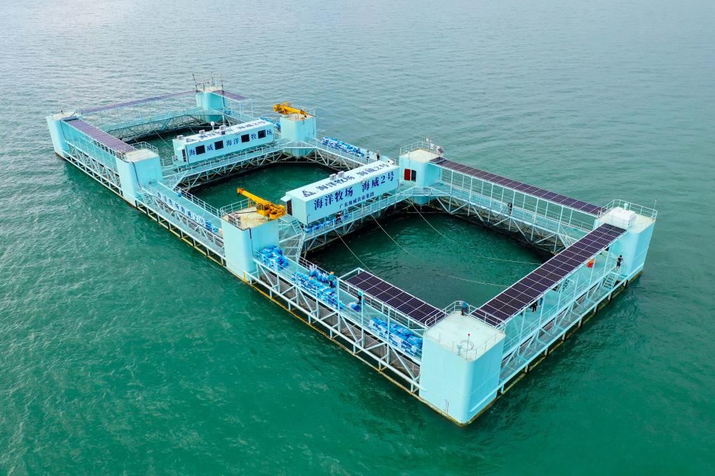 从广东出发沿着中国海岸线一路北上,福建的“宁德1号”,浙江的“东海1号”,江苏的“陶湾一号”,山东的“深蓝1号”……一座座技术先进的深远海养殖平台“耕海牧渔”,一批批生猛海鲜从这些“蓝色粮仓”源源不断“跃”上餐桌。