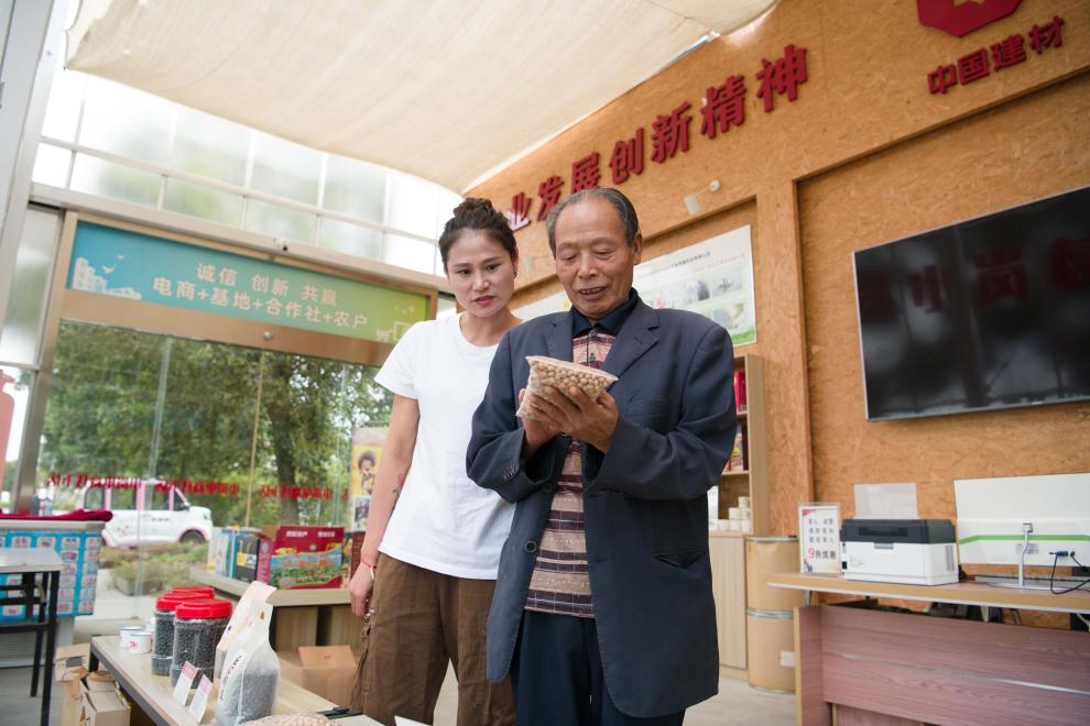 9月26日,严宏昌(右)在小岗村农产品电商平台线下体验店里参观。