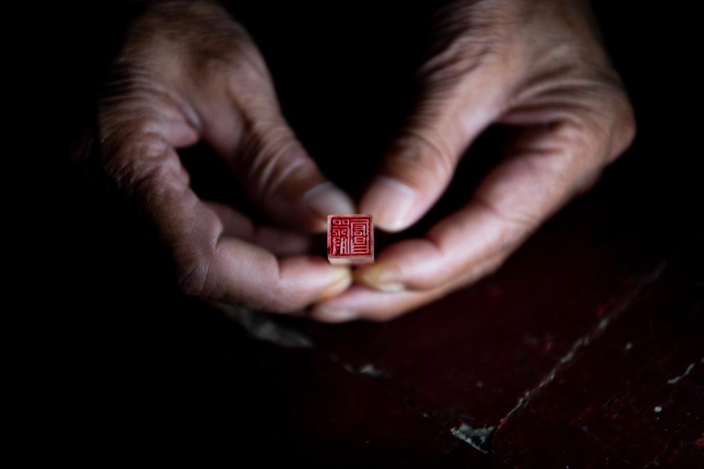 9月25日,严宏昌在家中展示自己当年在“大包干”契约上使用过的印章。