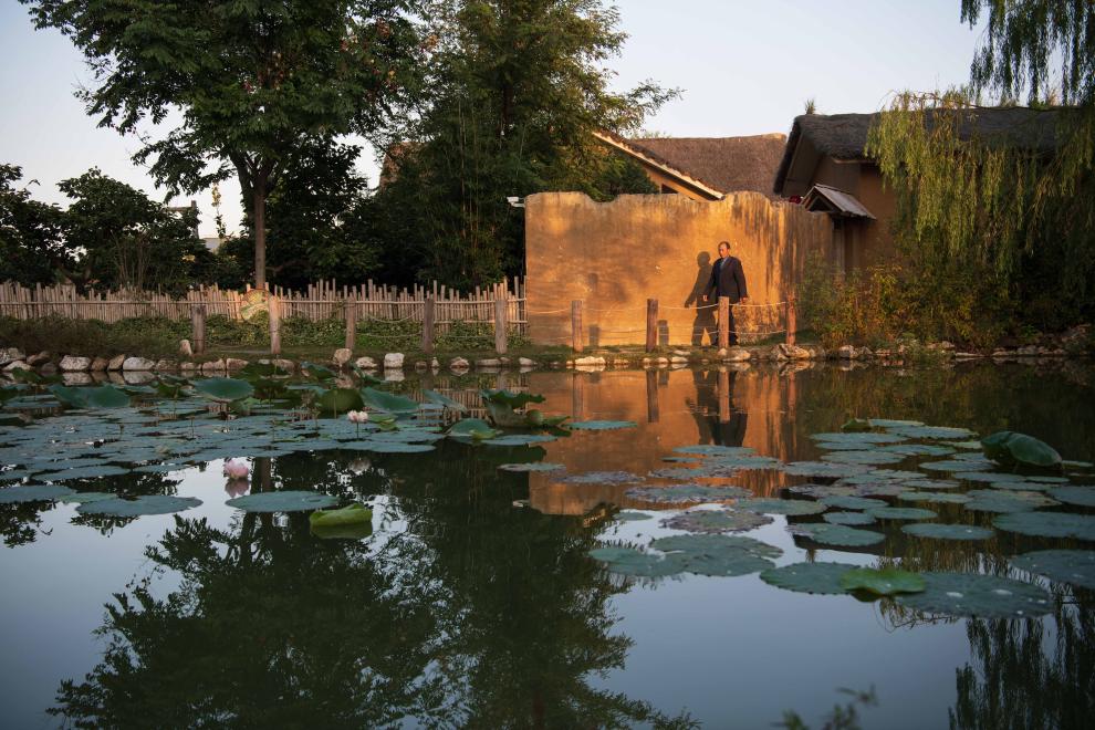 9月27日,严宏昌在小岗村一处荷塘边休闲散步。