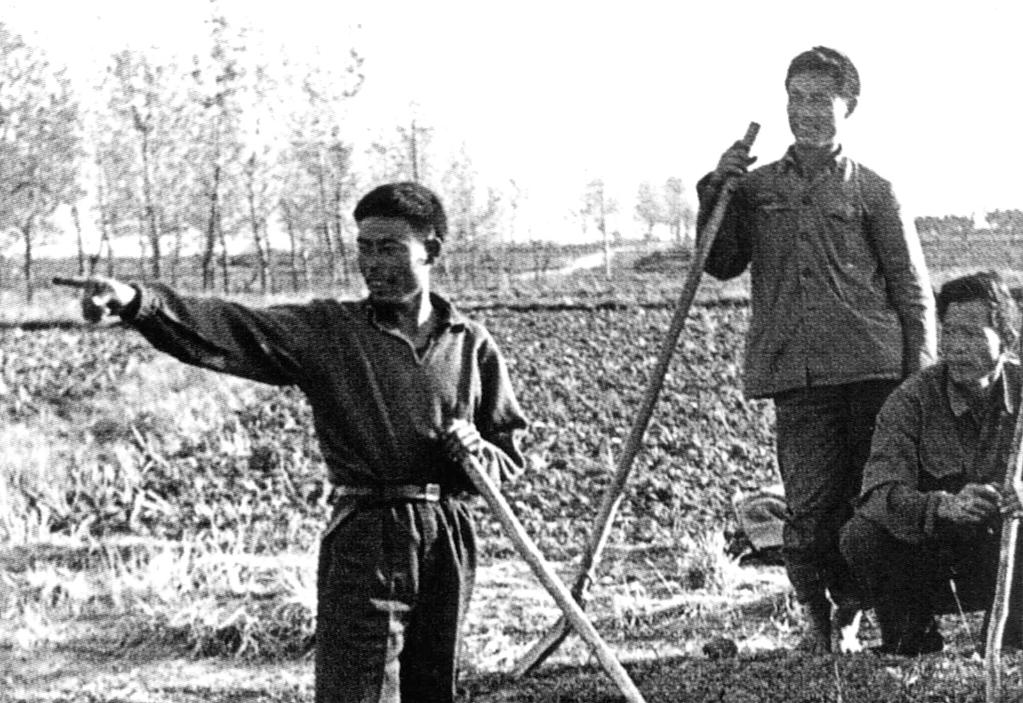 “大包干”带头人严宏昌(左一)在田地里劳作(资料照片)。