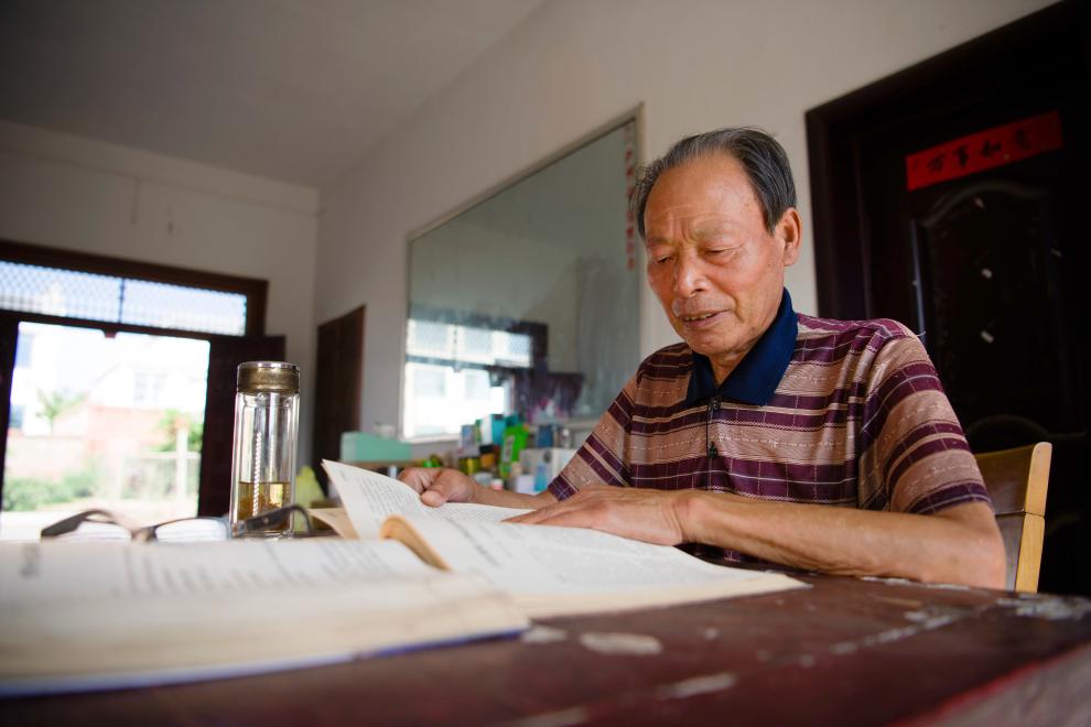 9月27日,严宏昌在小岗村的家中阅读书籍。