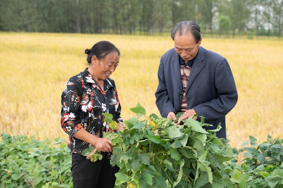9月26日,严宏昌(右)和大女儿严德凤在自家稻田旁交流。