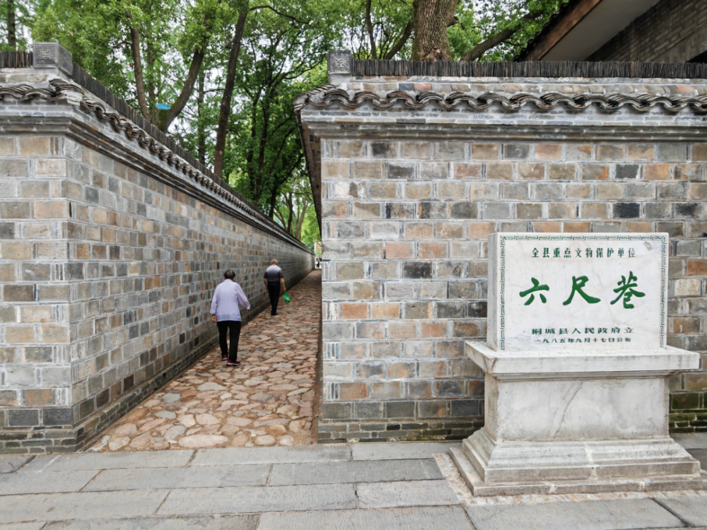 ↑市民在安徽省安庆市桐城市六尺巷通行。