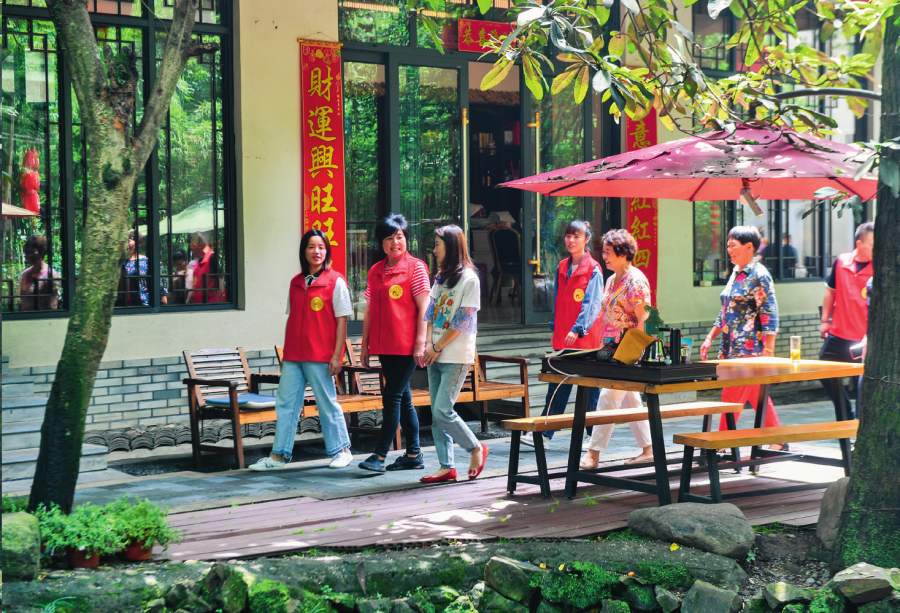 走进白沙村,只见柏油马路边是排列齐整的黄色小洋楼,家家户户门口都有绿植点缀,村里建起健身广场、篮球场、游泳池、羽毛球场等大型运动场所。2024年春节,村里组织第三次拍摄全村福,上千村民齐聚在一起,用镜头定格幸福笑容。