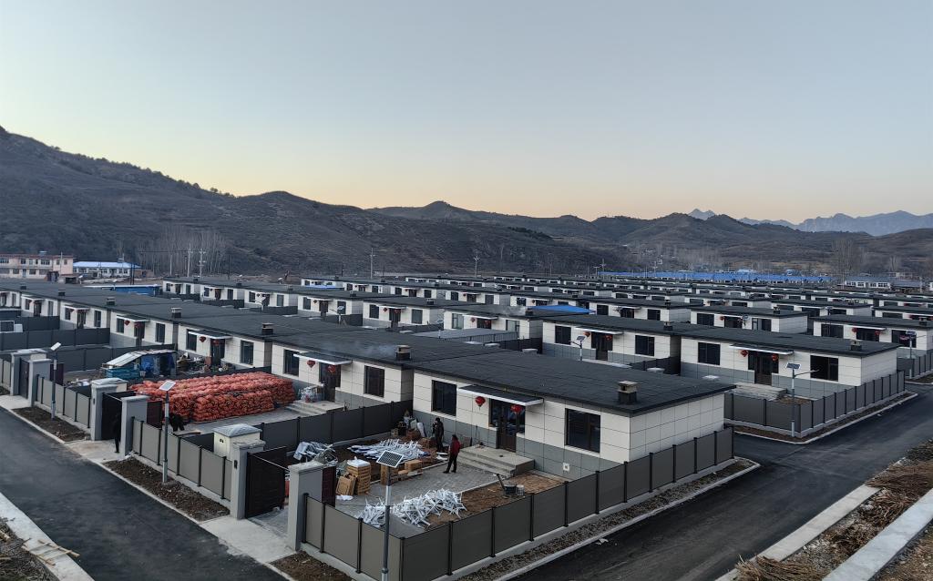 杨树底下村重建新房全景。新华社记者高爽 摄