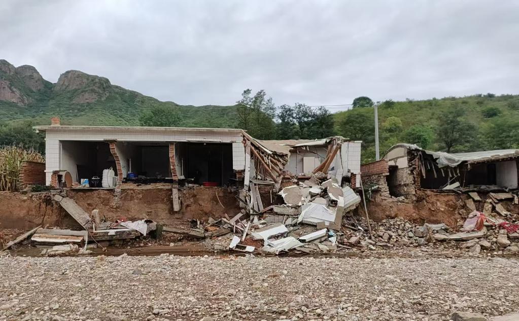 8月,被洪水冲毁的杨树底下村民居。(受访者供图)