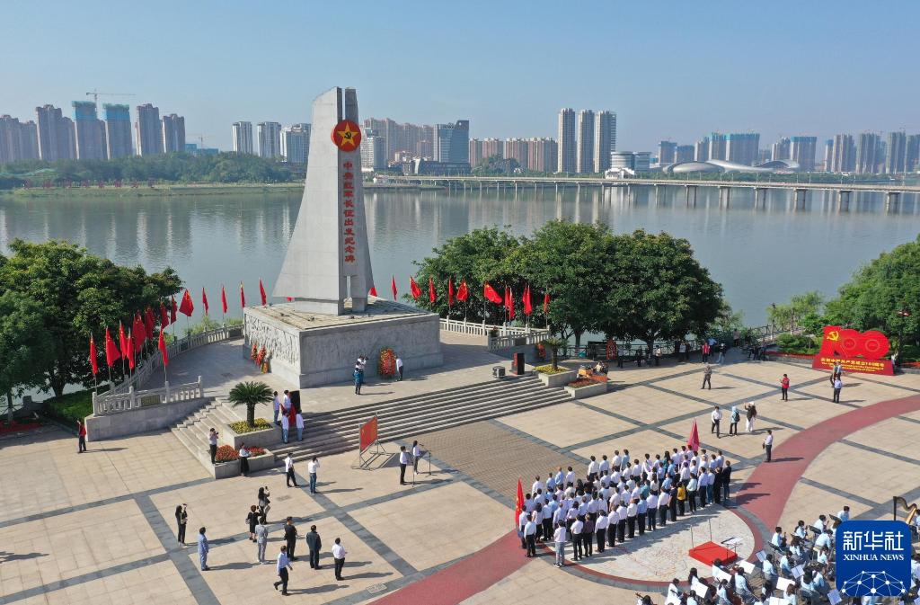 人们在江西省于都县中央红军长征出发纪念碑前参加纪念活动(2021年5月1日摄)。新华社记者 万象 摄