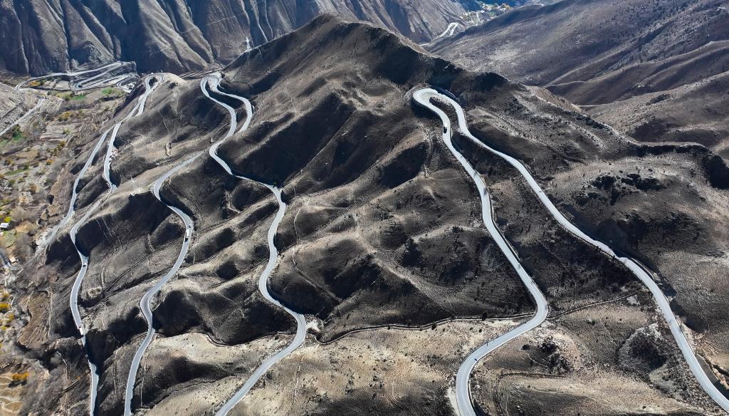 这是2024年11月16日拍摄的位于西藏自治区昌都市八宿县境内的“怒江72拐”(无人机照片)。新华社记者 格桑朗杰 摄