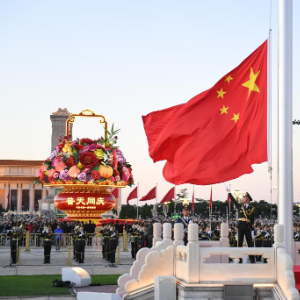 2024年10月1日清晨,隆重的升国旗仪式在北京天安门广场举行,庆祝中华人民共和国成立75周年。
