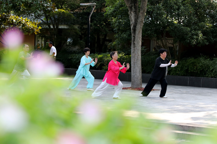 2024年8月8日,市民在江苏苏州公园锻炼。新华社发(杭兴微 摄)