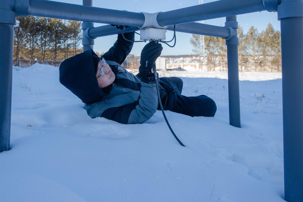 2024年2月2日,中国科学院地质与地球物理研究所黑龙江漠河地球物理国家野外科学观测研究站科研人员刘纪康在检查设备。