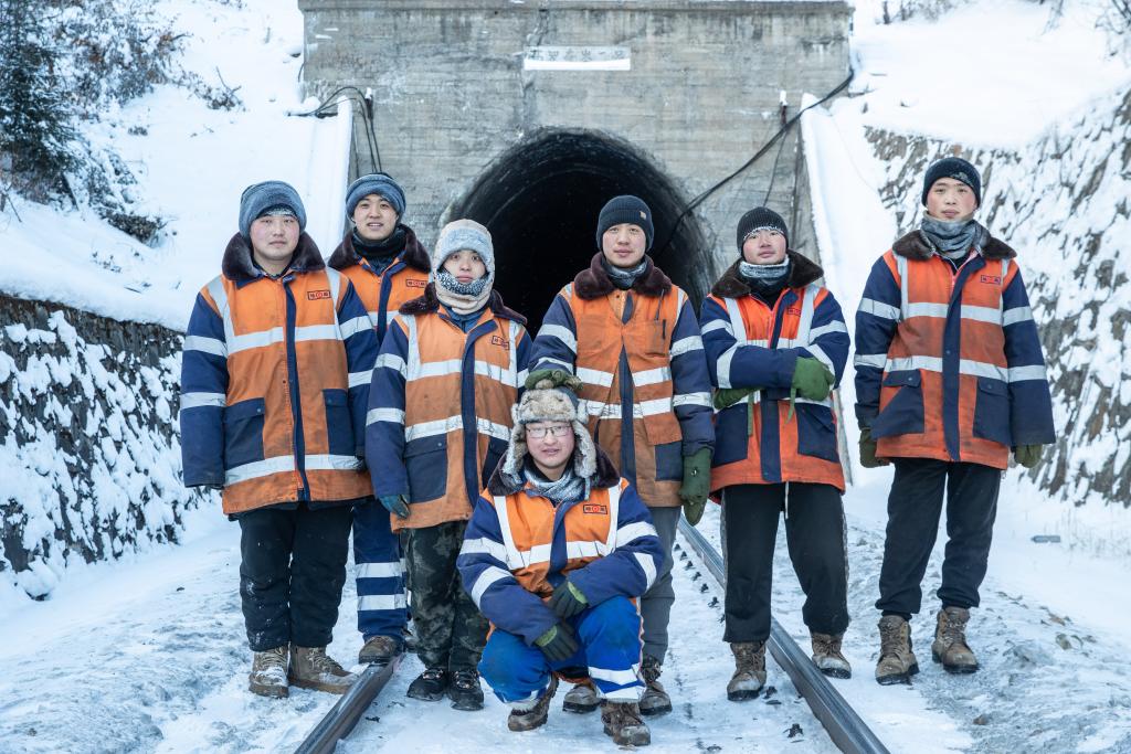 白天,我跟着作业工人在嫩林线69.1公里长的高难线路上采访。对他们来说,是最有意义的事。“这个地方修好了,来回过车,我们自己心里得劲儿,这是最北端的线路,我们的责任,年轻时候干点狠事儿,以后有念想。”
