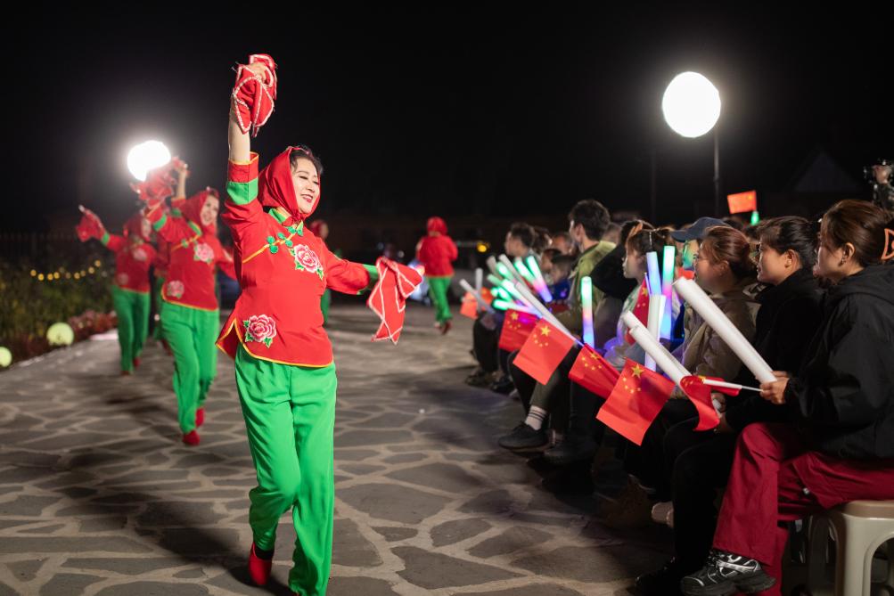 2024年9月20日,在宁安市上官地村,村民欣赏晚会节目。