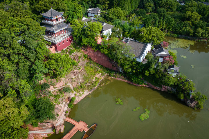 航拍东坡赤壁风景区(2023年7月24日摄)。新华社记者 伍志尊 摄