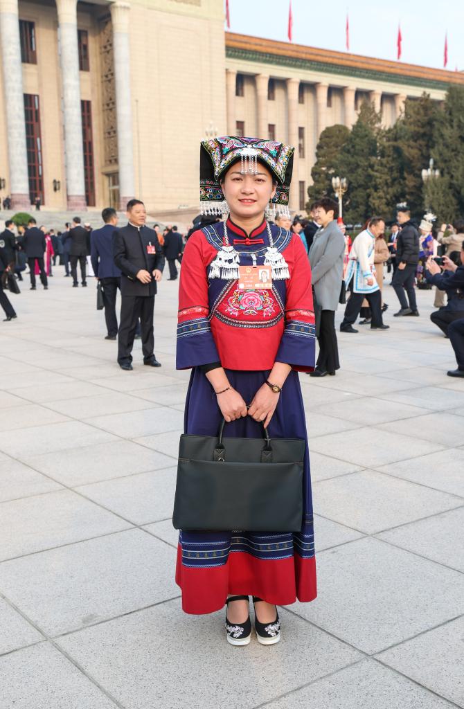 3月5日,全国人大代表卢丹在人民大会堂前留影。