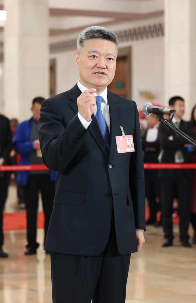 3月5日,第十四届全国人民代表大会第三次会议首场“部长通道”集中采访活动在北京人民大会堂举行。这是国家金融监督管理总局局长李云泽接受媒体采访。