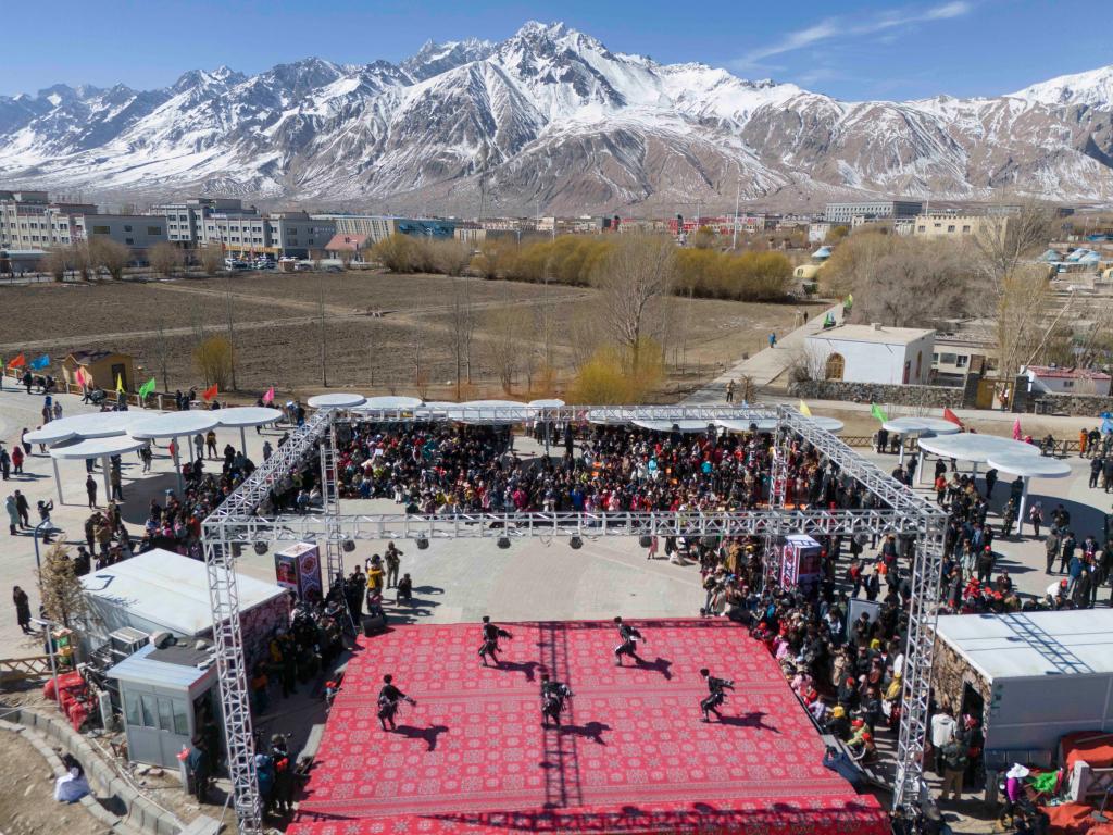人们在塔县观看非遗民俗展演。新华社记者 胡虎虎 摄
