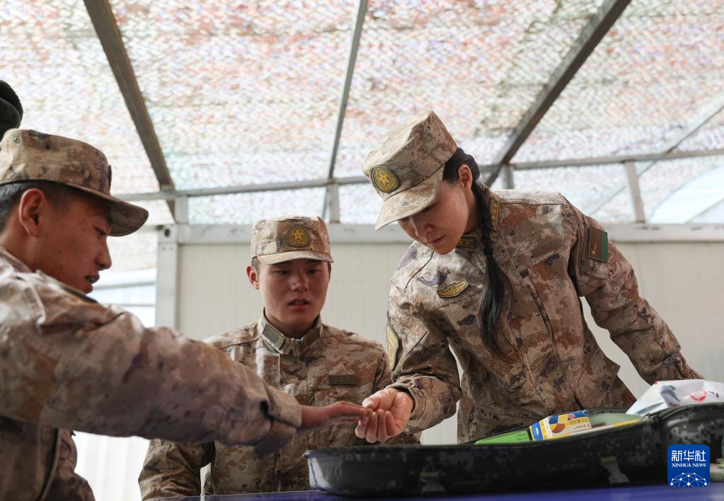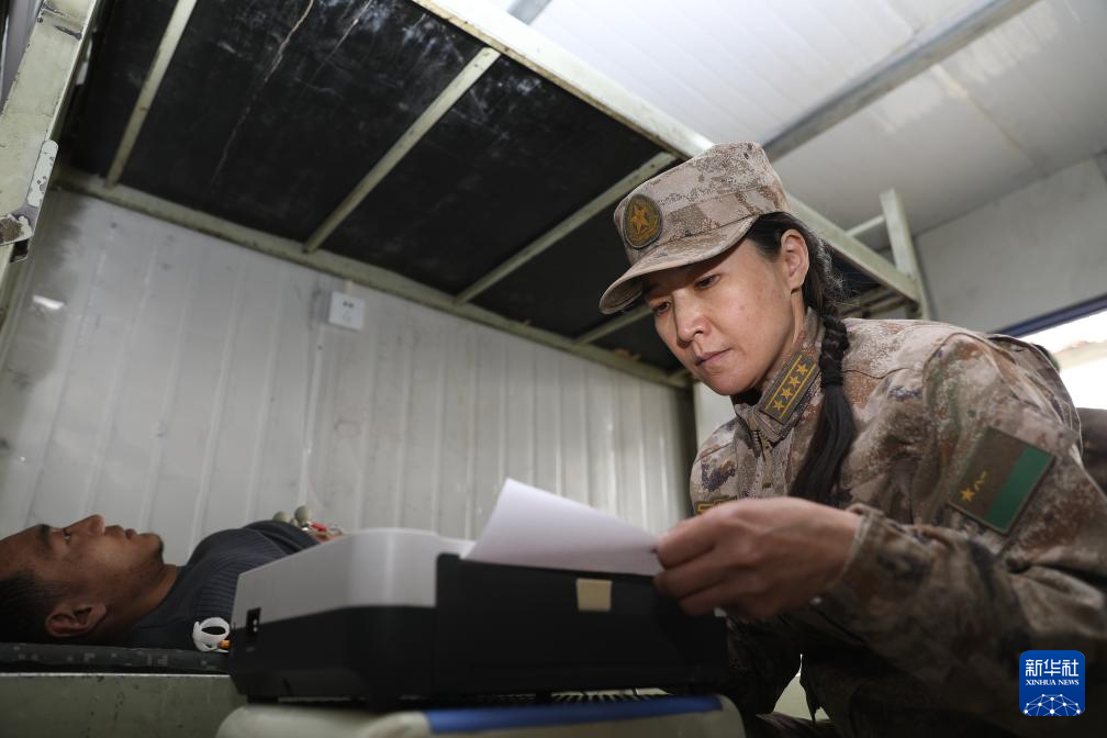 联勤保障部队第941医院重症医学科主任张瑛在高海拔哨所巡诊(2022年3月20日摄)。新华社发(孟钊 摄)