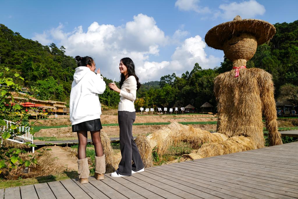 2025年1月9日,两名顾客在云南省普洱市思茅区一家户外咖啡馆交谈。