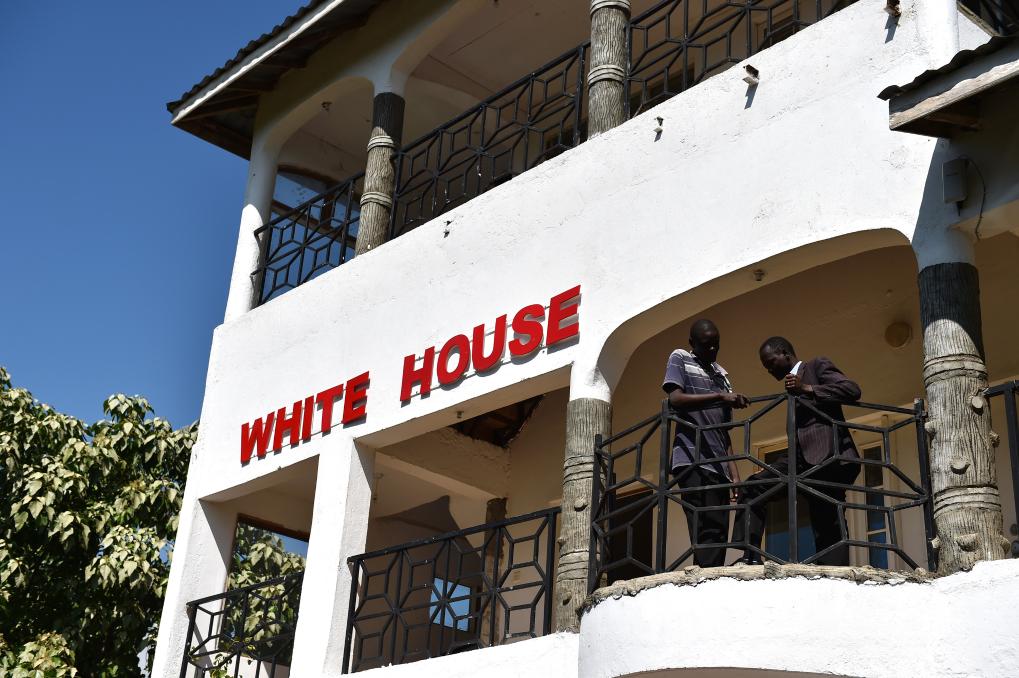 2015年6月29日,在肯尼亚西部科盖洛村,两名男子在名叫“白宫”的酒店阳台上聊天。该村是时任美国总统奥巴马生父的故乡。