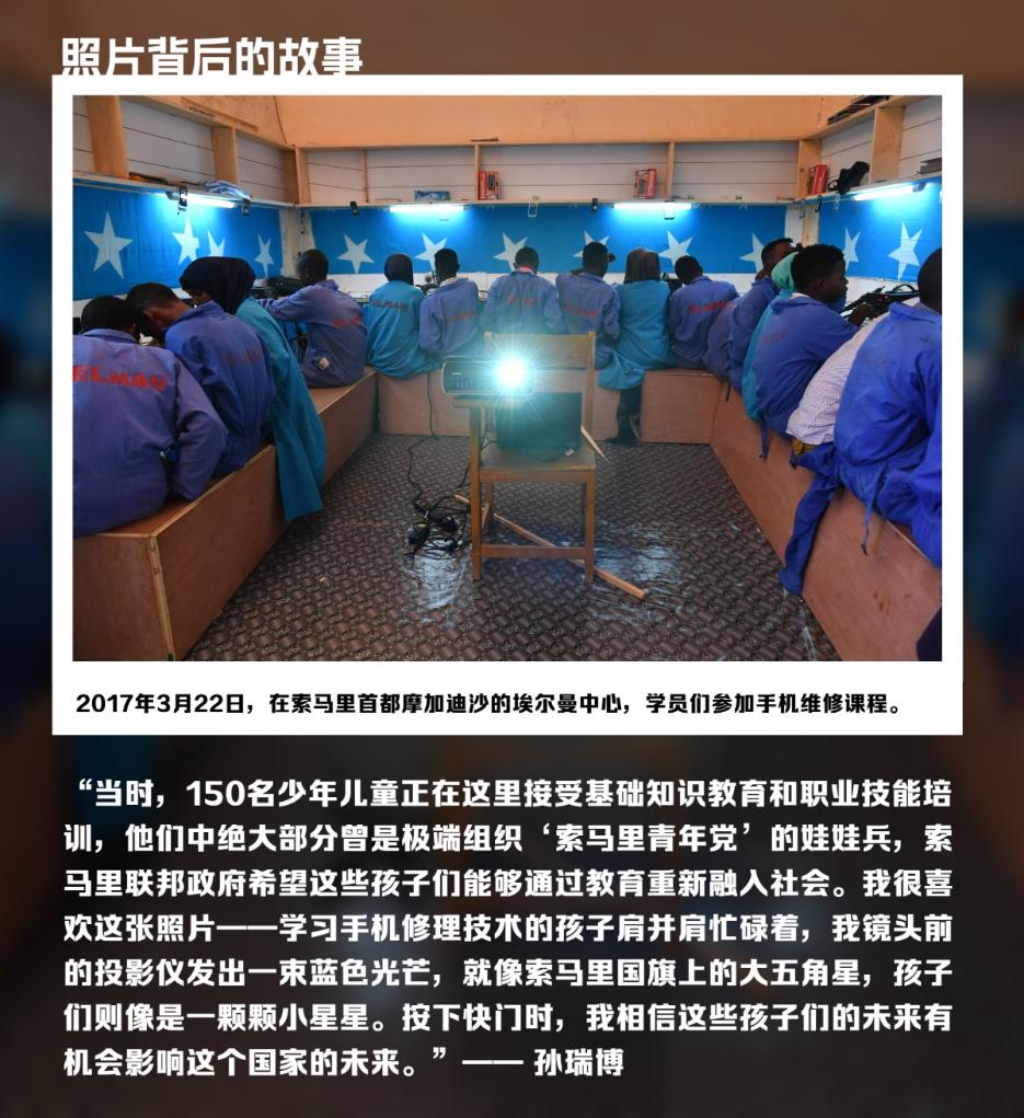 当时,我想拍摄一些这个饱经内战摧残的国家重回正轨的希望,这是当时较为少见的视角。当我从联合国索马里办公室得知,摩加迪沙有一个帮助曾经在极端组织服役的前娃娃兵重新融入社会的公益组织时,我没有听从安全顾问的建议,冒着风险采访了这个名为“埃尔曼中心”的机构。
