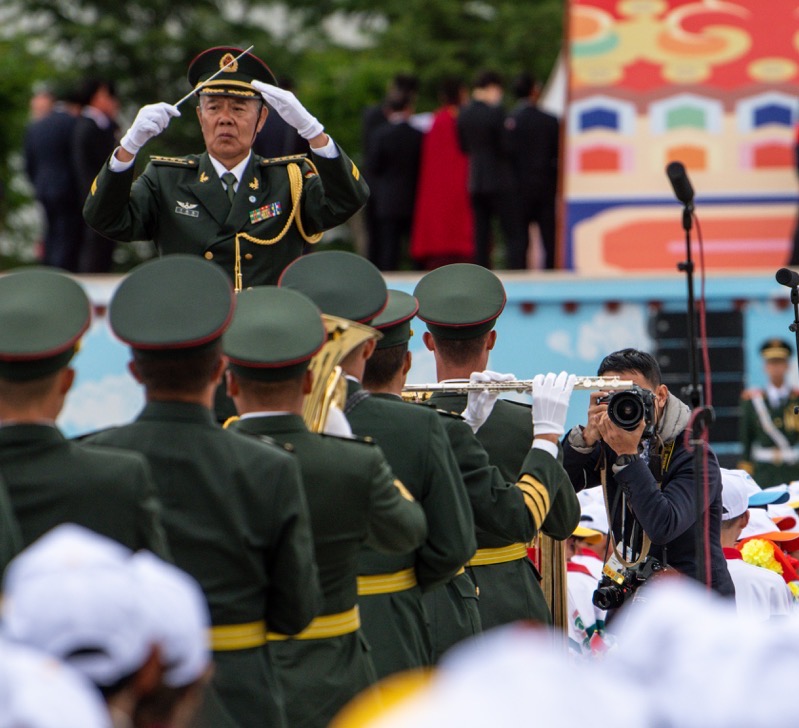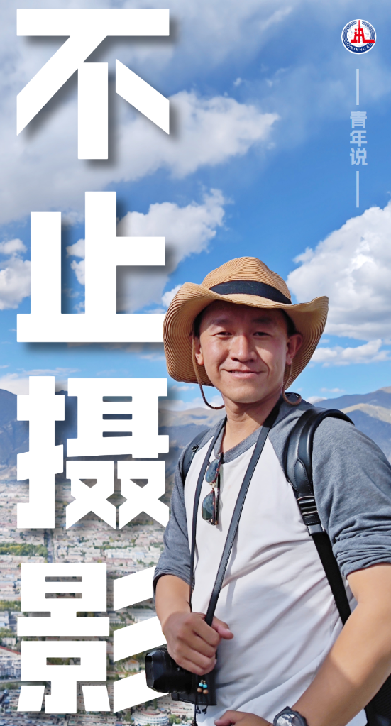 2021年8月19日,西藏各族各界干部群众2万多人欢聚在拉萨布达拉宫广场,热烈庆祝西藏和平解放70周年。这是孙瑞博(右)在现场拍摄。