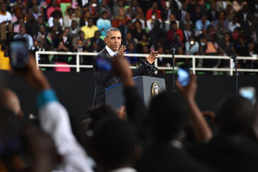 2015年7月26日,在肯尼亚首都内罗毕,时任美国总统奥巴马以总统身份访问肯尼亚时发表演讲。