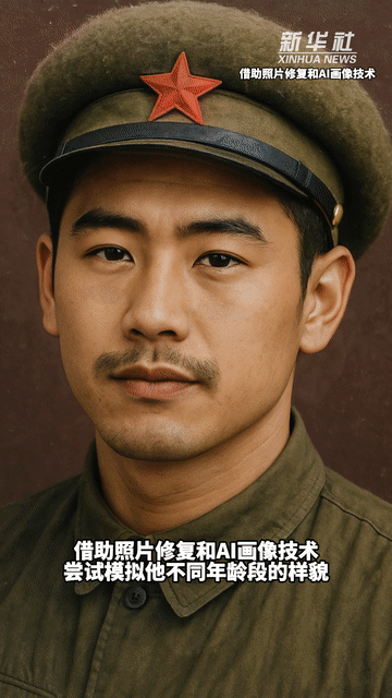 假如你没有牺牲,各个年龄段是什么模样?2025年清明节前夕,复旦大学科研人员以安徽全椒县抗美援朝烈士赵路德的一张黑白照片为基础,借助照片修复和AI画像技术,尝试模拟他不同年龄段的样貌。