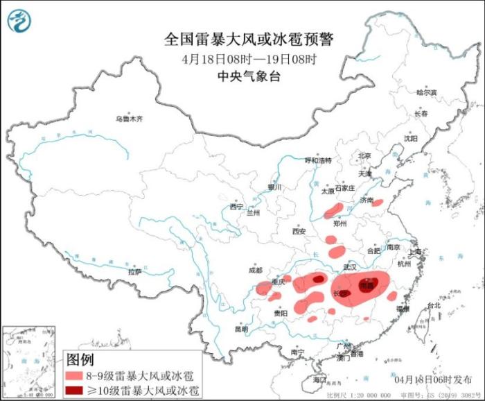 中央气象台今晨发布强对流天气蓝色预警:预计今天,西南地区东部、江汉、江南以及河南西北部、山东南部等地的部分地区将有8级以上雷暴大风或冰雹天气,其中,湖南中部和西北部、江西中北部等地的部分地区将有10级以上雷暴大风,最大风力可达11级以上;西南地区东部、江南等地的部分地区将有小时雨量大于20毫米的短时强降水天气,其中,湖南中北部、江西中北部、贵州东南部等地的部分地区小时雨量大于50毫米,最大可达60毫米以上。预计,强对流的主要影响时段为今天下午至夜间。