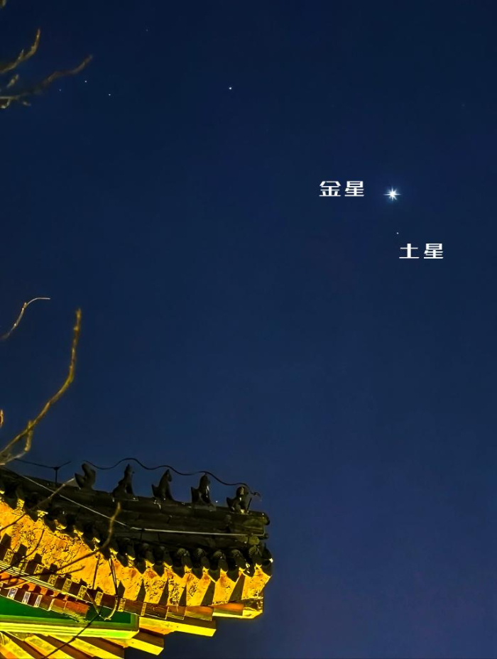 2025年1月15日在天津水上公园拍摄的金星与土星相伴。(钟奕 摄)