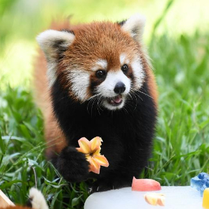 2023年7月13日,广州动物园里的小熊猫享用冰镇水果。新华社记者 邓华 摄