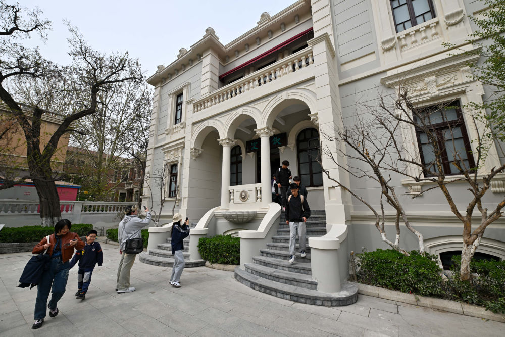 民园广场位于天津市五大道文化旅游区,是集文化博览、游客集散、休闲体验于一体的城市休闲广场,有“中西合璧的城市客厅”之称。这是2024年11月9日拍摄的民园广场。