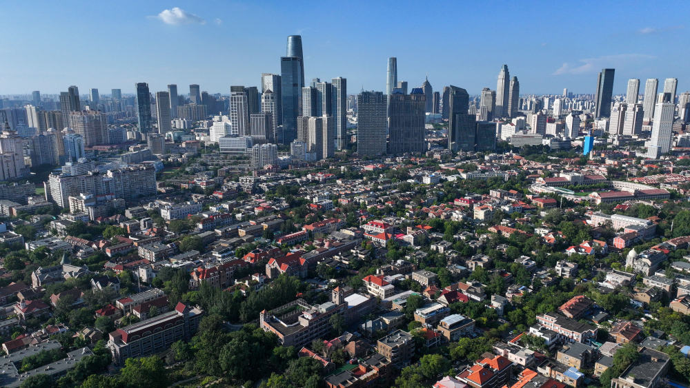 这是2024年8月22日拍摄的天津五大道历史文化街区及天津中心城区建筑群(无人机照片)。位于天津市和平区的五大道历史文化街区有“世界建筑博览会”之称,保存有风格多样的近代建筑群落,具有独特的历史文化价值。