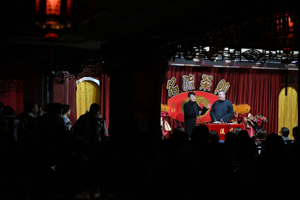 2024年5月24日,相声演员在天津市南开区古文化街名流茶馆登台演出。