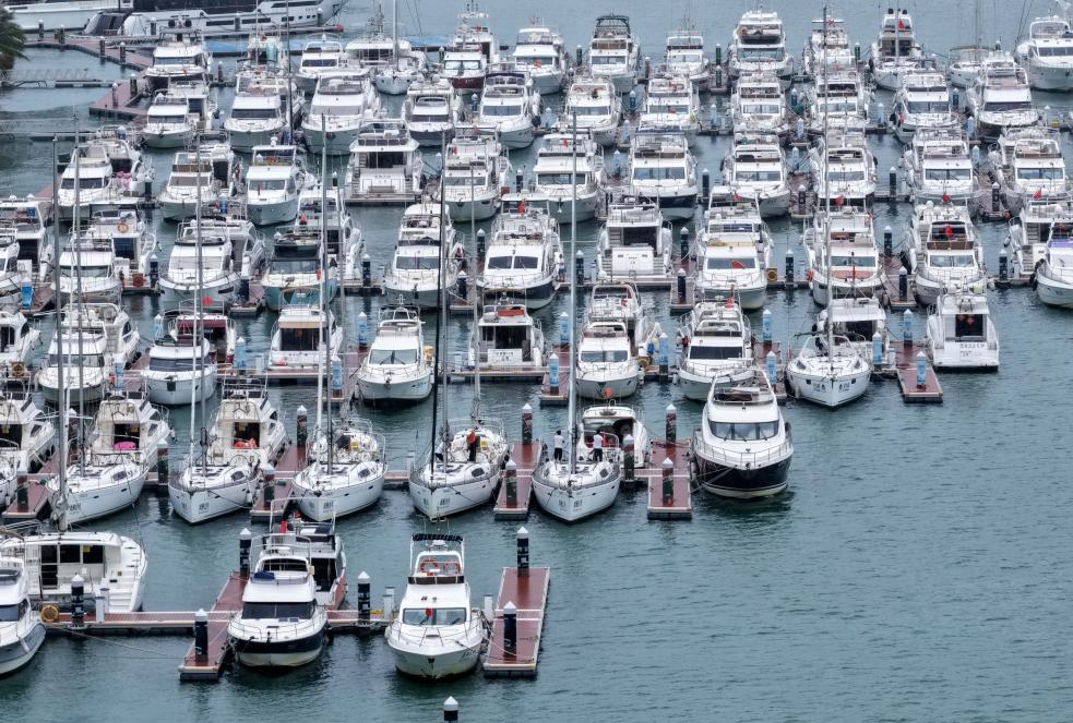 6月12日,受台风“蝴蝶”影响,游艇停泊在海南三亚市鸿洲游艇码头避风。新华社记者 赵颖全 摄