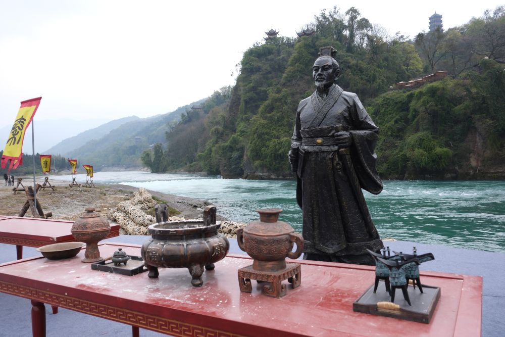“东流不尽秦时水,西望长陪太守祠”。每年清明时节,都江堰都会举行极为隆重的典礼和祭祀活动,人们身着秦装汉服,以古法岁修的方式进行清淤、疏浚、放水,以纪念兴修都江堰的蜀郡太守李冰,并祈福风调雨顺、国泰民安。据考证,这一民间习俗沿袭了近2000年。唐代时,活动升格到国家层面。到了清朝,官民对李冰的纪念达到顶峰。