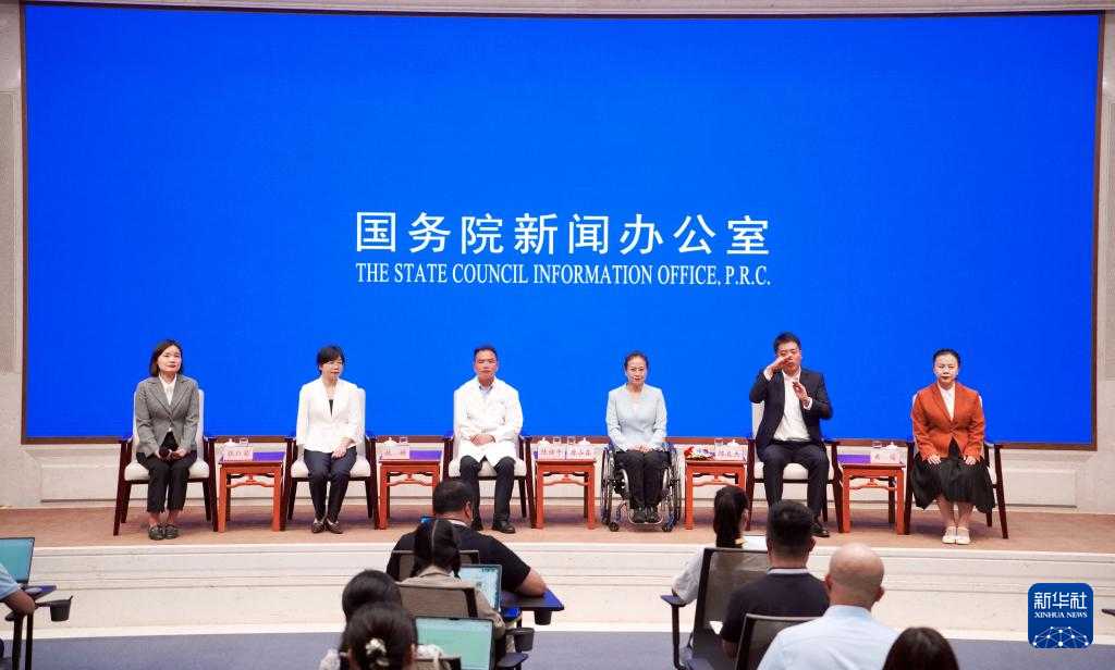 6月30日,国务院新闻办公室在北京举行“新征程上的奋斗者”中外记者见面会,全国自强模范代表围绕“弘扬自强精神 凝聚奋进力量”与中外记者见面交流。新华社记者 潘旭 摄